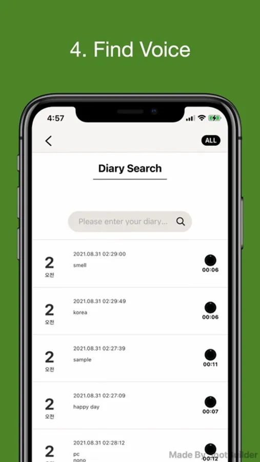 VODA is a diary application that utilizes voice recording and speech to text (STT) functions.