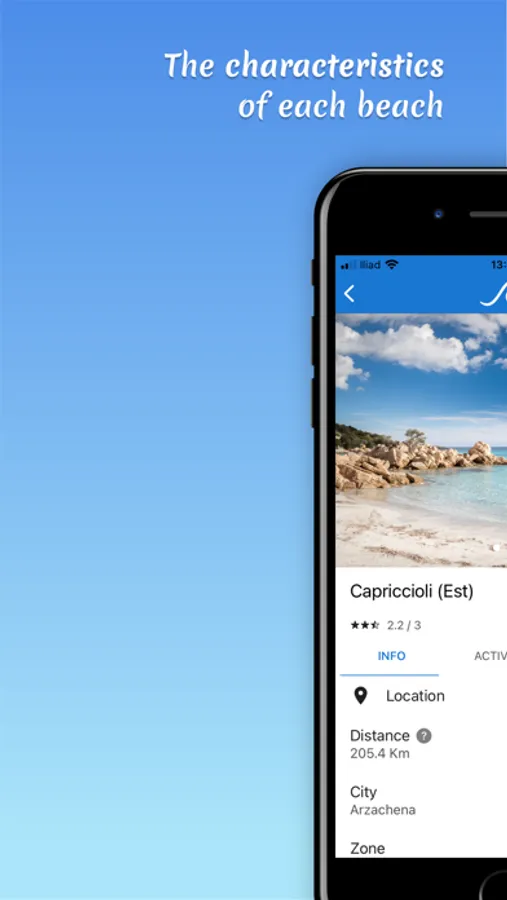 For each of the 1000 beaches of Sardinia, you can find up-to-date detailed information about the geographical location, the morphological characteristics, and the available services, including parking areas, sanitary services, kiosks to buy food and drinks, and reserved areas for your pets.