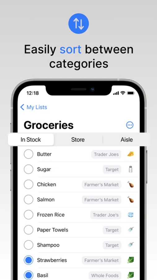 - SORT through lists with one-tap at the store so you always know exactly what you need