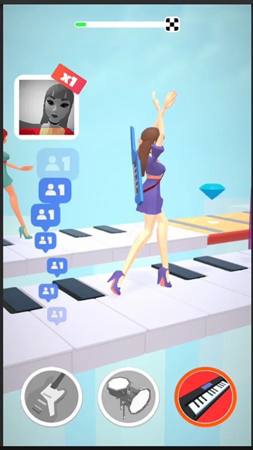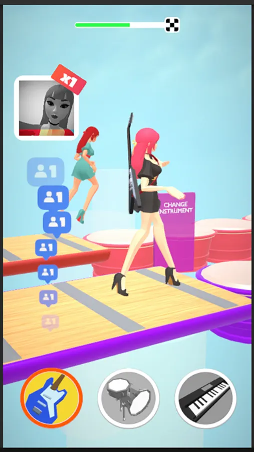 At every level, new instruments, songs, and outfits are waiting for you! Grow your fame as you progress and gather ever more fans to cheer you.