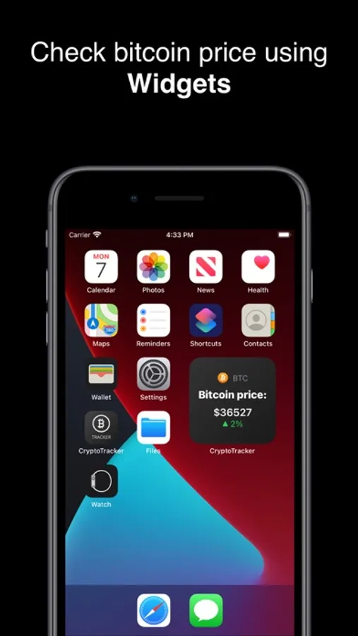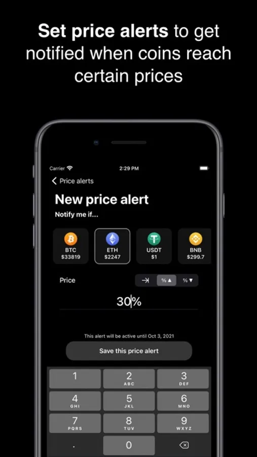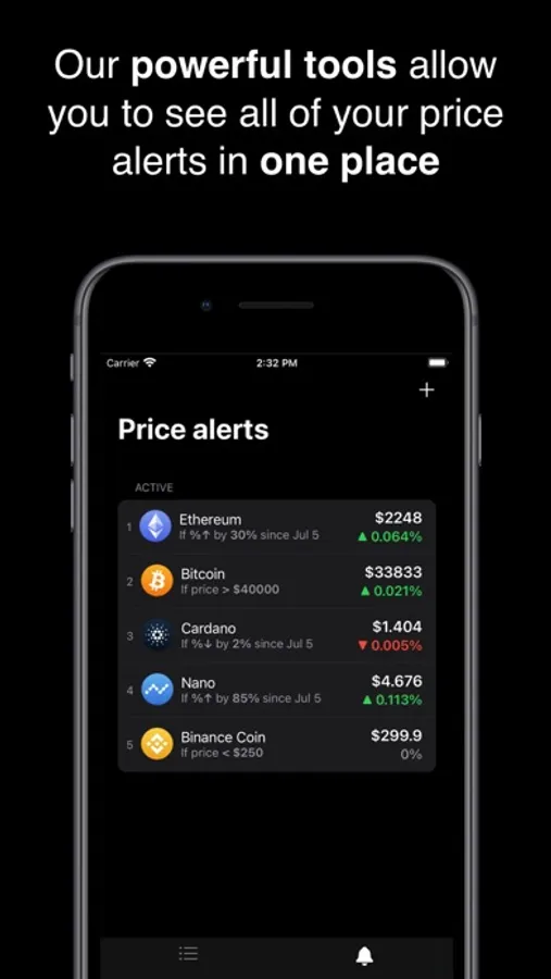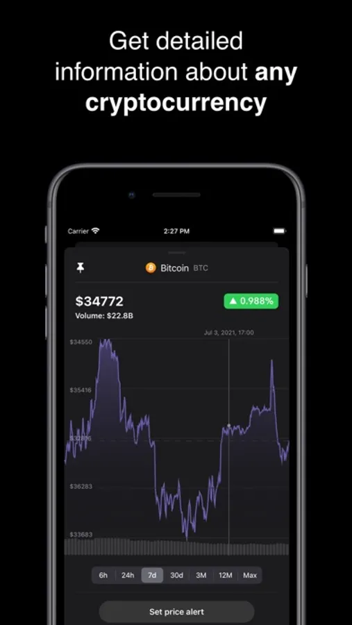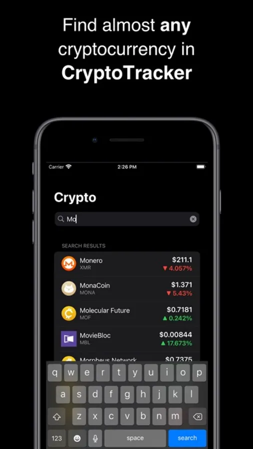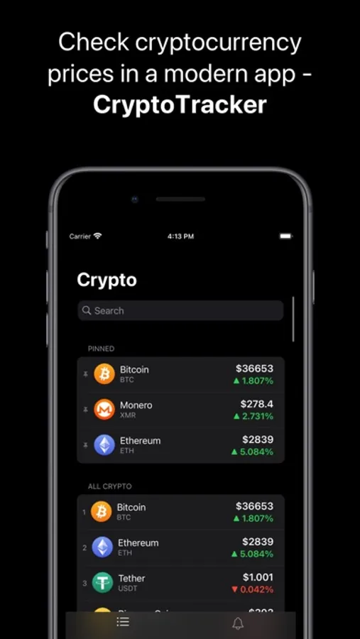 CryptoTracker is a professional and really easy-to-use price tracking app for your favorite cryptocurrencies like Bitcoin, Ethereum, Cardano, XRP and 4000+. Get a detailed description of any cryptocurrency. Set price alerts to get notified when the price goes above or below the threshold you set.