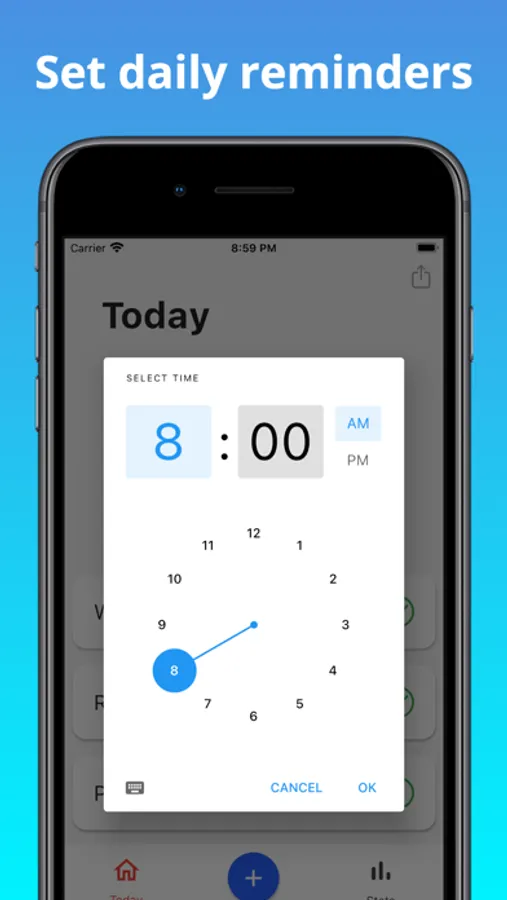 3) Swipe right on a habit to add a daily reminder, (swipe left on a habit if you need to delete it)