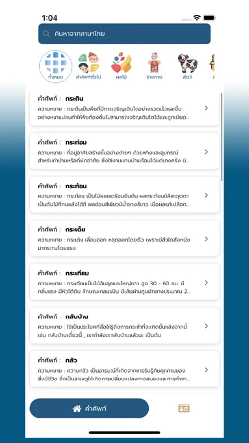 ใช้ค้นหาคำศัพท์ภาษาอีสาน หรือแบบหมวด ก-ฮ พร้อมยังสามารถฟังเสียงพูดของคำศัพท์นั้นๆ