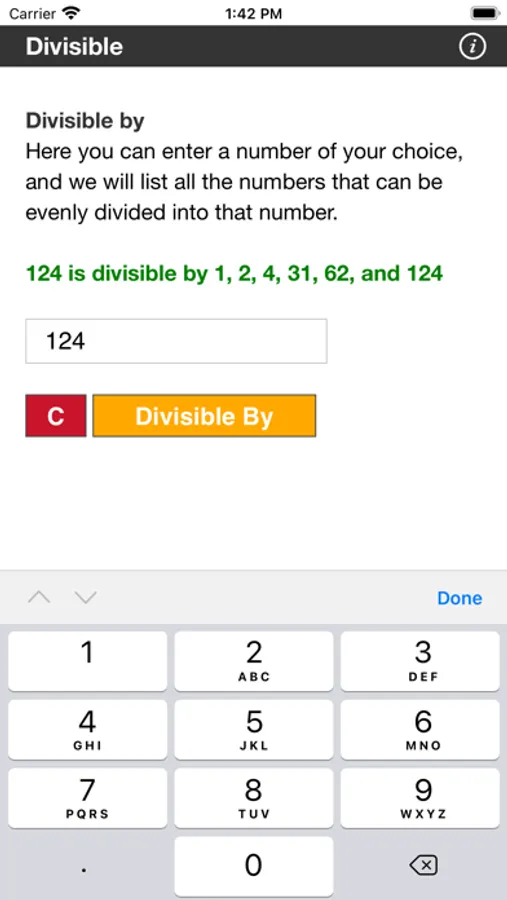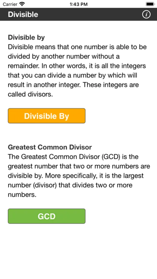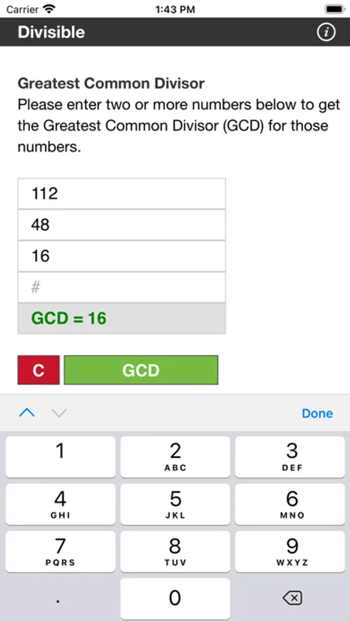 With this app, not only can you look up what any number is divisible by, but you can also find the greatest common divisor (GCD) of two or more numbers.