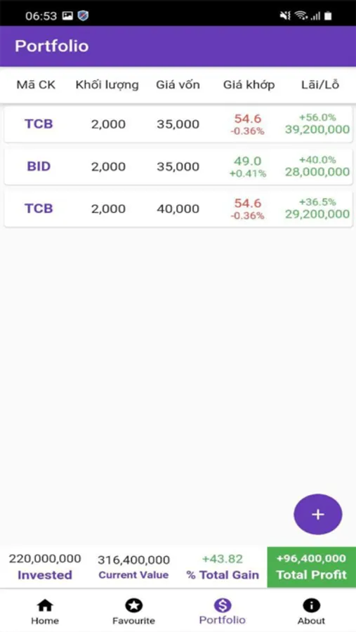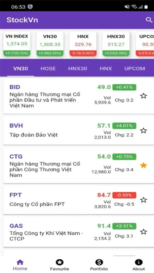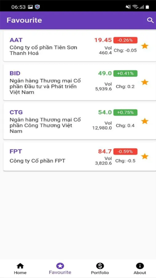 - Tính năng favourite quản lý các mã cổ phiếu được quan tâm