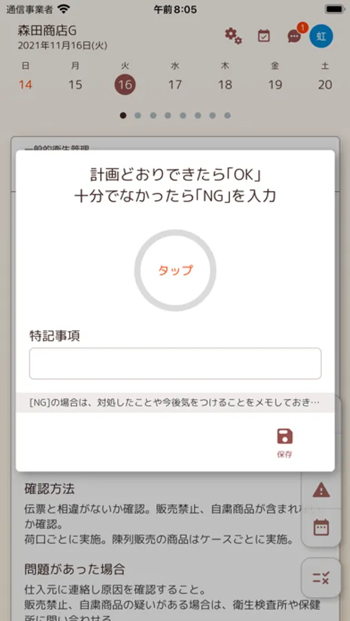 休憩時間や閉店後の短い時間で管理計画を変更したり、記録をつけたり、従業員と情報共有することができるアプリです。