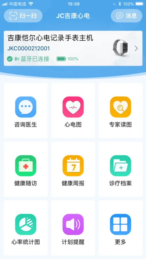1.腕式心电记录仪采集的数据,JC吉康心电应用程序不进行诊断性分析,请在使用该数据之前取得专业医师的帮助。