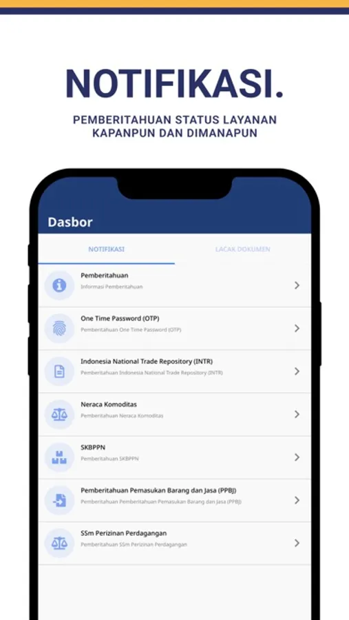 - Tracking Dokumen Perijinan dan Rekomendasi Larangan dan Pembatasan dari Kementerian/Lembaga
