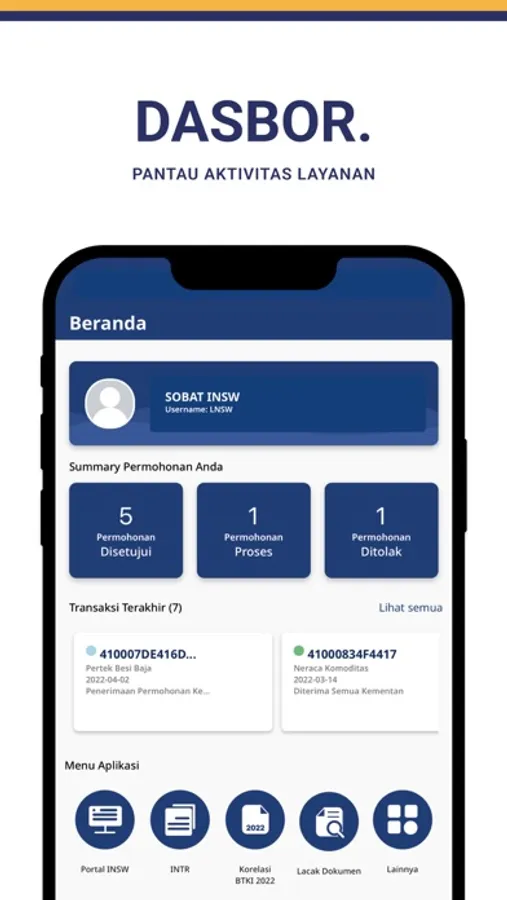 Aplikasi INSW Mobile menyediakan fasilitas :