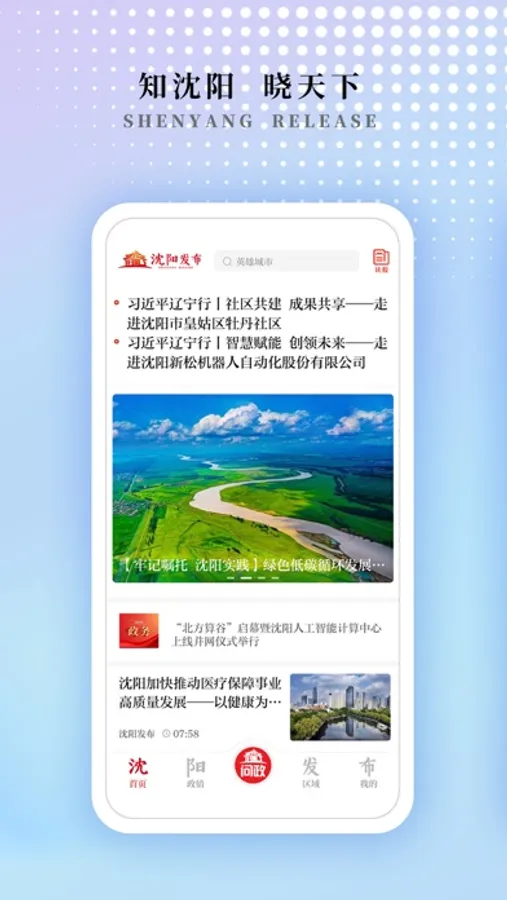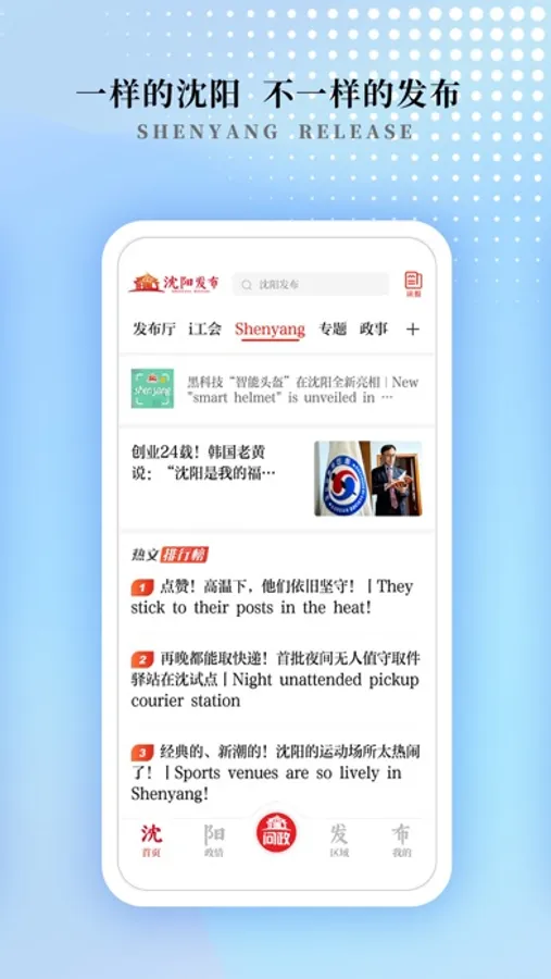 “沈阳发布”是依托沈阳政务、服务、商务资源倾情打造的政务新媒体发布平台,具有政务信息发布首发权,能够为用户推送权威、及时的新闻信息,提供有效、有用的服务资讯,实现政府及其职能部门与用户的互动交流,满足用户对重要信息的“一站式”获取。