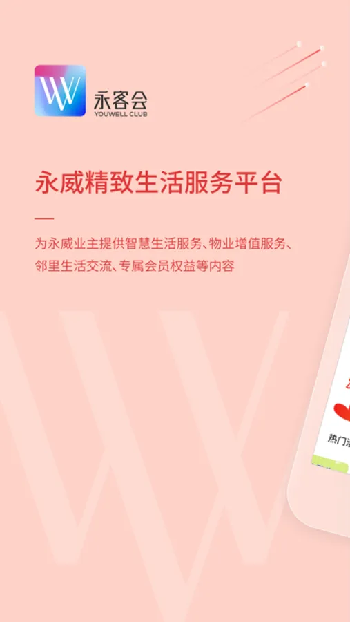 永客会是永威为业主提供智慧生活服务、物业增值服务、邻里生活交流、专属会员权益等内容的精致生活服务平台,以“向上、向善,唯真、唯美”为价值指引,以“乐享精致生活”为愿景,在永威精品质住区之上,营造永威式精致生活方式。