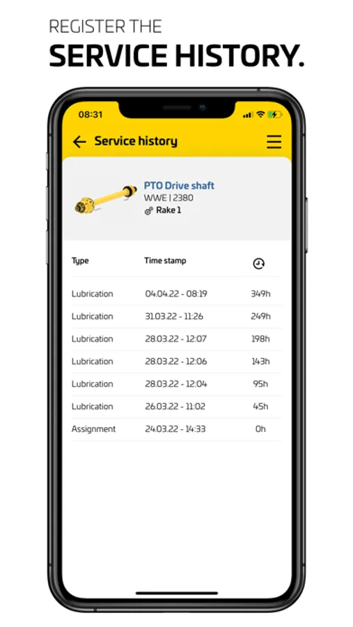 - Detailed product information: All relevant information on machinery and shafts is available on the smartphone at any time