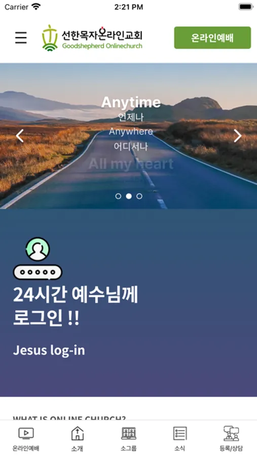 01 오프라인 모임을 기반으로 필요 시 온라인서비스를 이용하는 교회가 아닌 온라인을 기반으로 하여 필요 시 오프라인 모임도 갖는 교회입니다.