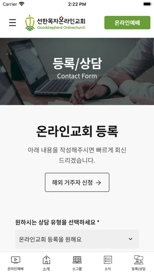 02 개인의 특별한 삶의 상황으로 인하여 온라인 목양이 필요한 경우 (훈련, 상담, 기도)