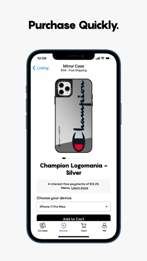 Buy phone cases in seconds, directly within the app. Store your billing, shipping and sizing information to expedite the process.