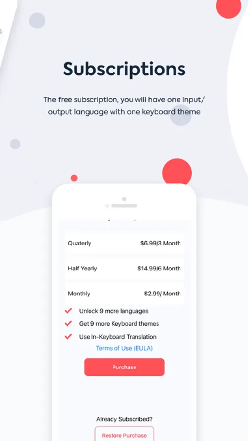 *The fine print: InterLingua offers a free subscription. Do note that on the free subscription, you will have one input and one output language with one keyboard theme. If you would like to enable more languages and/or themes, you will have to purchase one of the subscriptions (see options within the app). Manage your subscriptions in your Account Settings after purchase. Please see our terms of service and privacy for our privacy policy.