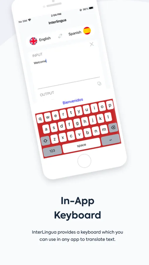 Texting or writing someone in a foreign language and you've forgotten the translation for a specific word? InterLingua allows you to translate words within any mobile app that you are using to communicate. InterLingua uses a keyboard which you will set as your phone's default keyboard, that way you can translate the words of your choice while communicating in any app. You will be able to type using your selected language (referred to as input language). If you do not know a specific word in the foreign language (referred to as output language), simply write the word in your input language and the InterLingua keyboard will automatically give you the translated word; which you can then select if you choose.