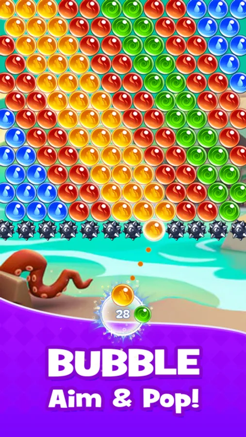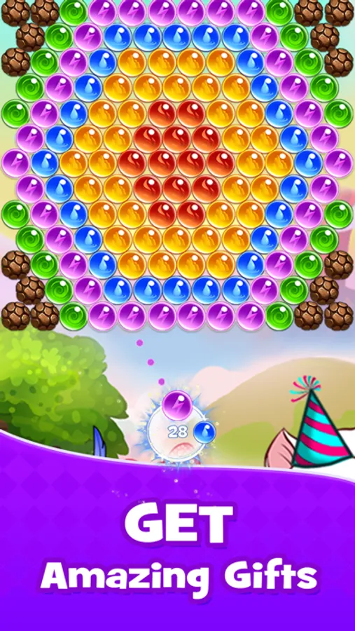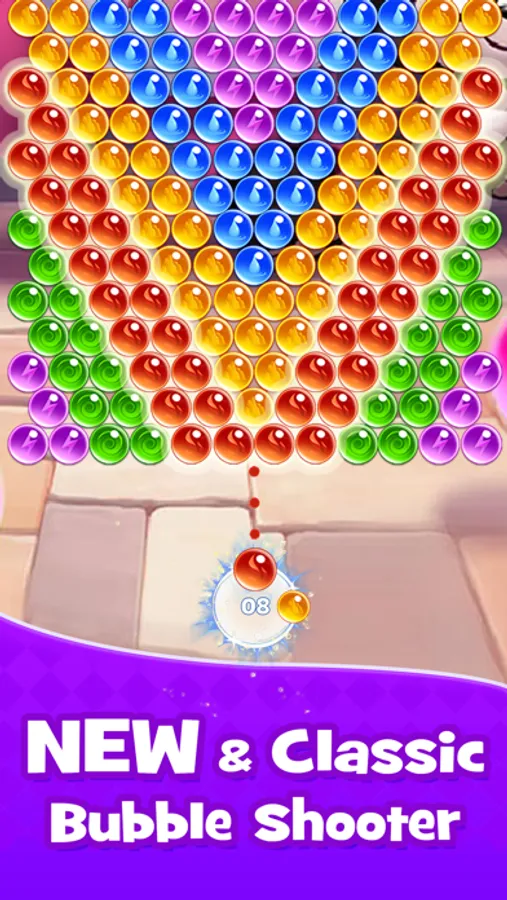 Show off your bubbles popping skills within exciting world. There're all colors of shining bubbles and tons of gorgeous maps diliver you to a new dreamy bubbling world