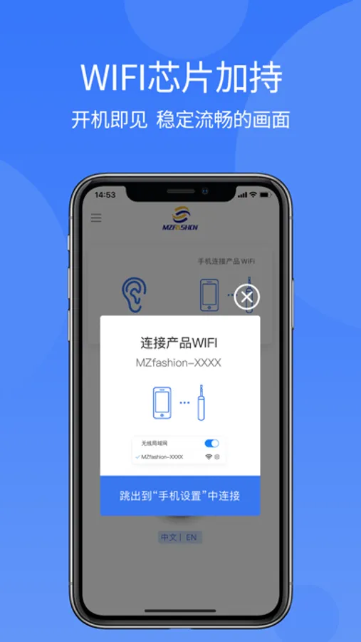 Mzfashion,是一款好用的手机采耳软件,采耳棒通过WIFI连接到app,用户可以清楚的看见自己的耳道,轻松查看实时画面。