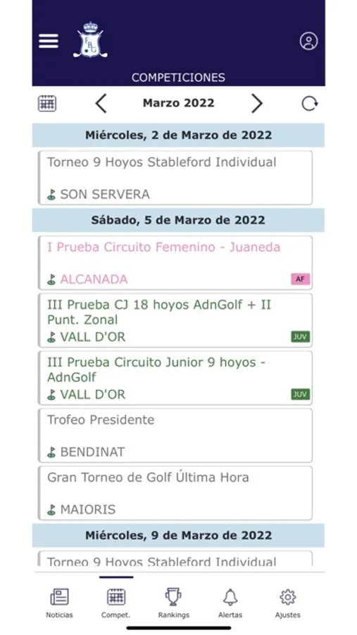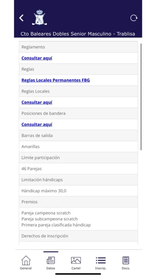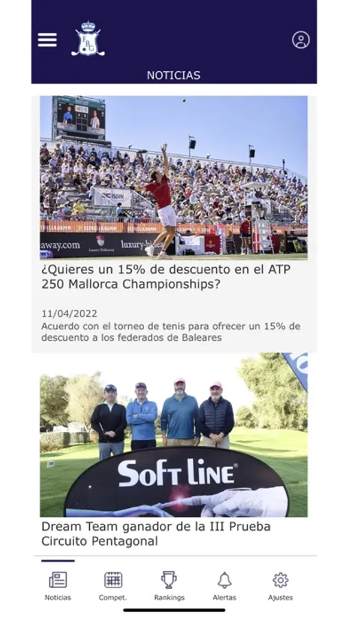 Con la APP de la Federación Balear de Golf podrás recibir alertas de competiciones y noticias, consultar todos los datos de nuestros Torneos oficiales e inscribirte online (inscripciones individuales, de parejas y equipos). Además, accede a tu ficha de actividad y con nuestro calendario mantente al día de todas las novedades del golf en las Islas Baleares.