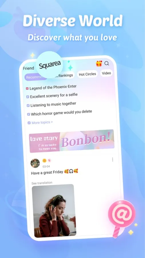Bonbon is an online gaming community for young people, where you can find your gaming friends and chat about games. You can also quickly meet friends from all over the world, share your hobbies and find people who understand you better. In Bonbon, you can say goodbye to your lonely life.