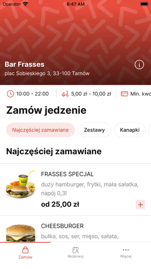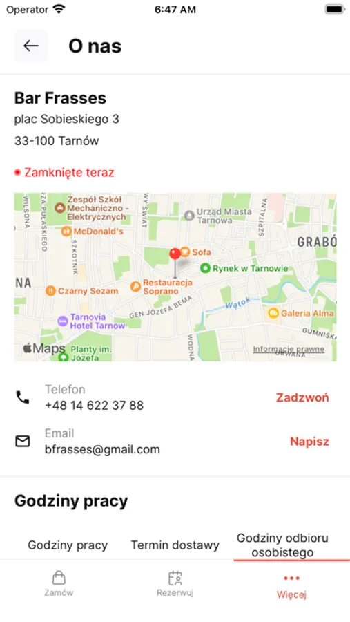 Oprócz zamawiania online aplikacja pozwala sprawdzić: