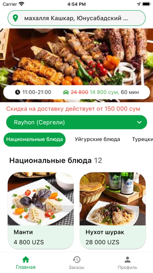 Rayhon milliy taomlari restoranidan ovqatlar buyurtma berish imkoniyati yaratildi.