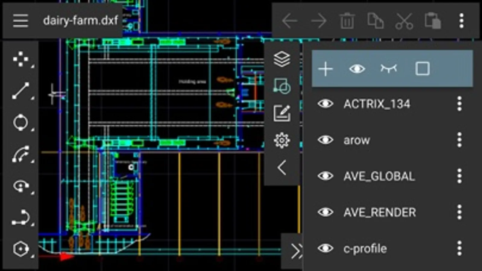 Layer support: Entity properties driven by layer properties (color, line width, line type), layer creation, layer deletion, layer rename, etc.