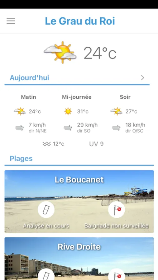 Qualité des eaux de baignade, météo, surveillance des plages, événements…