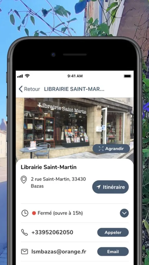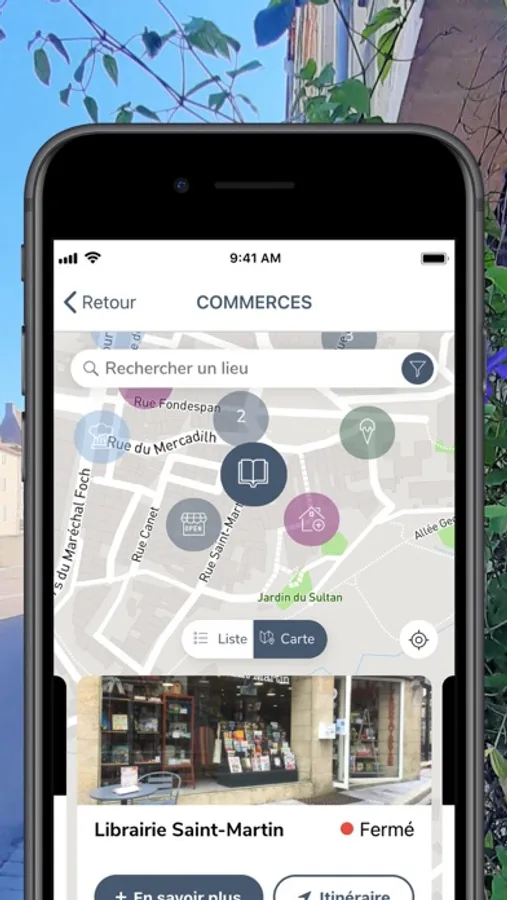 - Trouver facilement un commerce, s’y rendre et le contacter