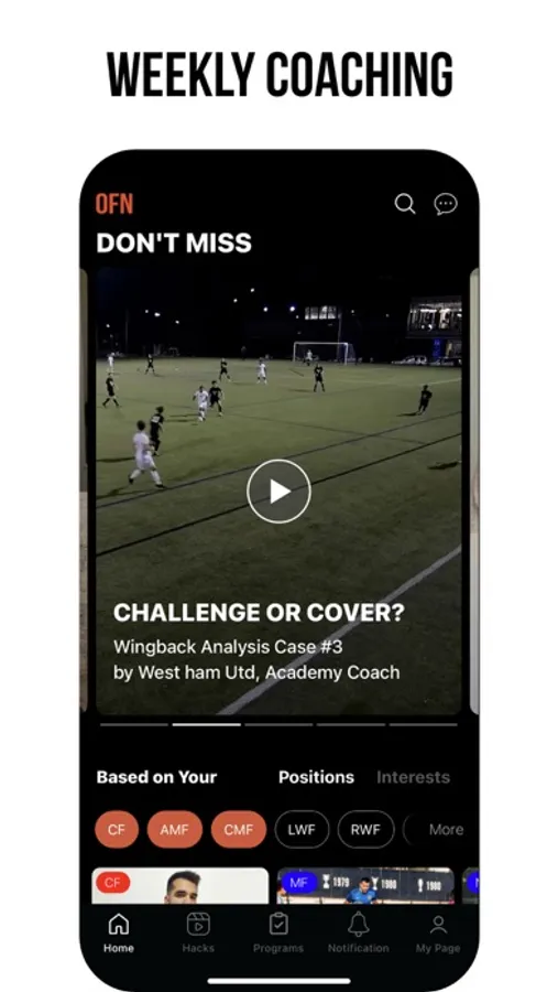 ⊙ OFN's Football Training App enables you to reach the higher level!