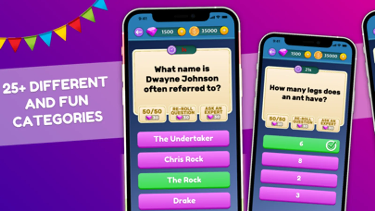 - Dozens of Trivia Categories for multiple choice quiz questions!