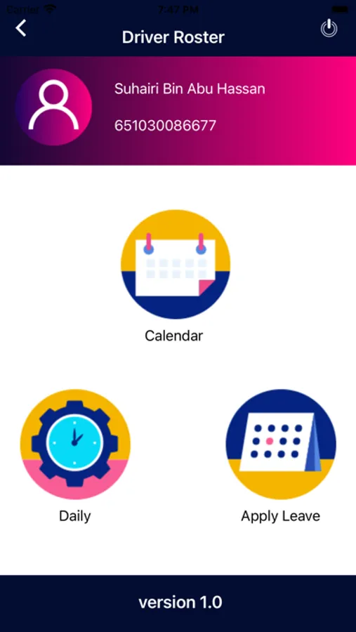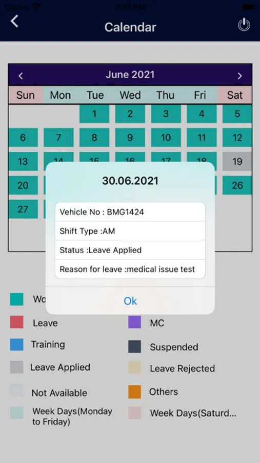 This application receive immediate alerts for critical incidents such as vehicle over speed, panic, extreme braking and others. Alerts are sent to mobile by notification.The driver roster is consist the features such as daily shift, calendar and leave request.Driver can start his daily job and track his woking hours by using this app.