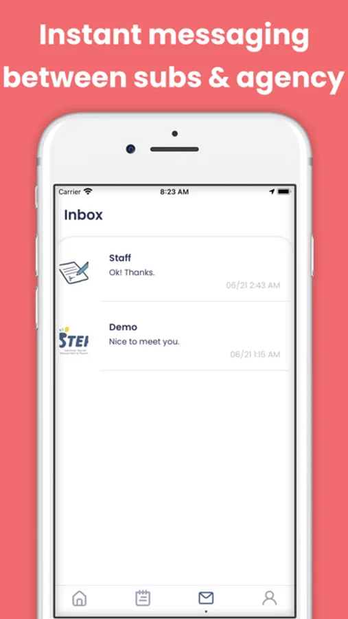 - A complimentary mobile app that enables substitute teachers to self-report availability, indicate preferred job locations, access worksite information, and confirm their bookings