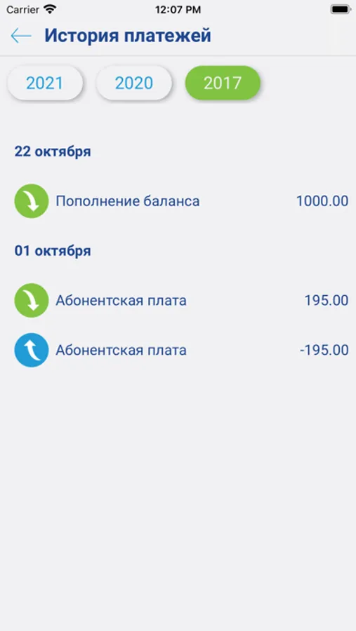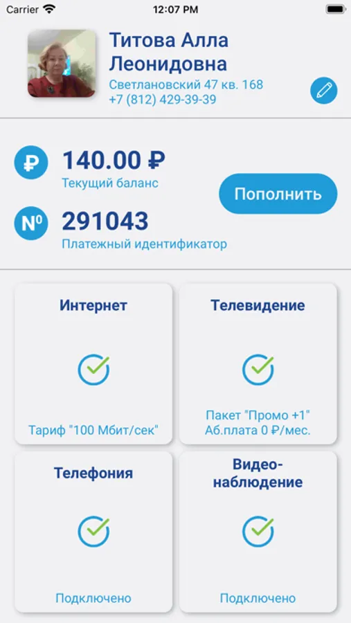 Приложение позволяет узнать текущий баланс, актуальный тариф, подключенные пакеты ТВ и услуги, посмотреть историю платежей, пополнить баланс.