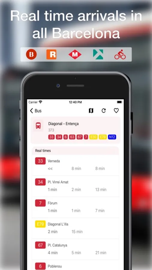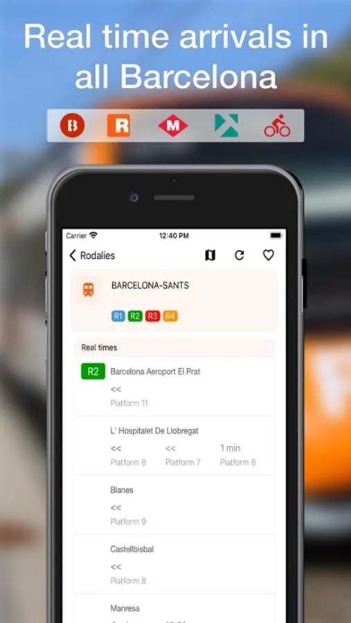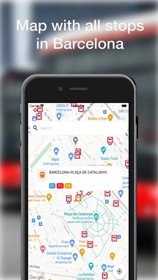 • Live time arrivals for TMB buses, Metro, Rodalies and Tram.