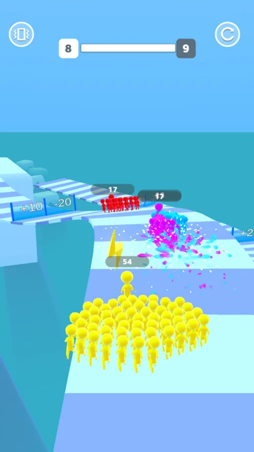 Dodge the character from road to road. Evaluate spawn points correctly and grow your army.