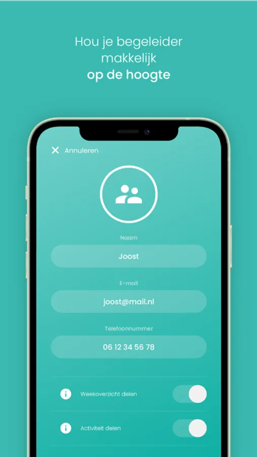 Could you use a helping hand? Then set up your own supervisor or coach, who can call you immediately if necessary. With daymate premium you can send the supervisor a weekly email update or let you know how you are doing immediately after an activity. Prefer no supervisor? No problem. All good.