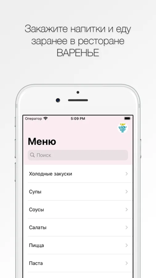 Как сделать заказ в приложении “Ресторан Варенье”: выберите понравившиеся позиции из меню, добавьте их в корзину и перейдите на экран оформления заказа (по нажатию на иконку корзины).