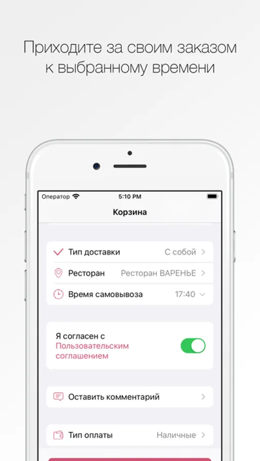 Укажите время, когда хотите прийти за своим заказом.