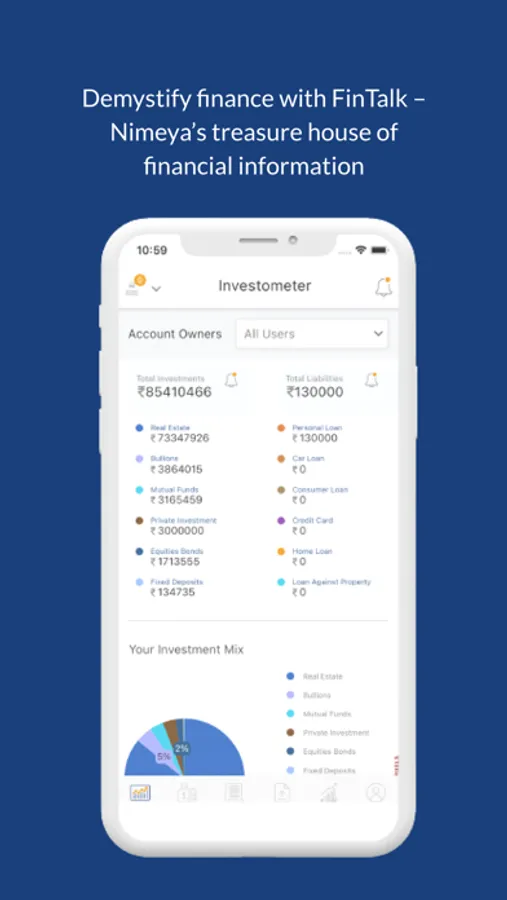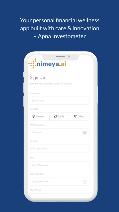Nimeya.ai offers an innovative AI driven personal financial wellness app that helps user to organise financial investments & liabilities – all in one place, in a secure manner. The “Investometer” measures financial wellbeing by providing financial networth and scores on real time basis. One can also conveniently store all financial documents in our KeepSafe.