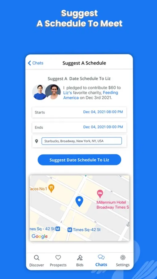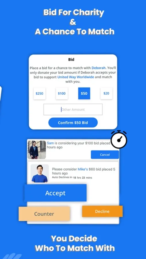 Bid for a chance to support your interested person's favorite charity and match with