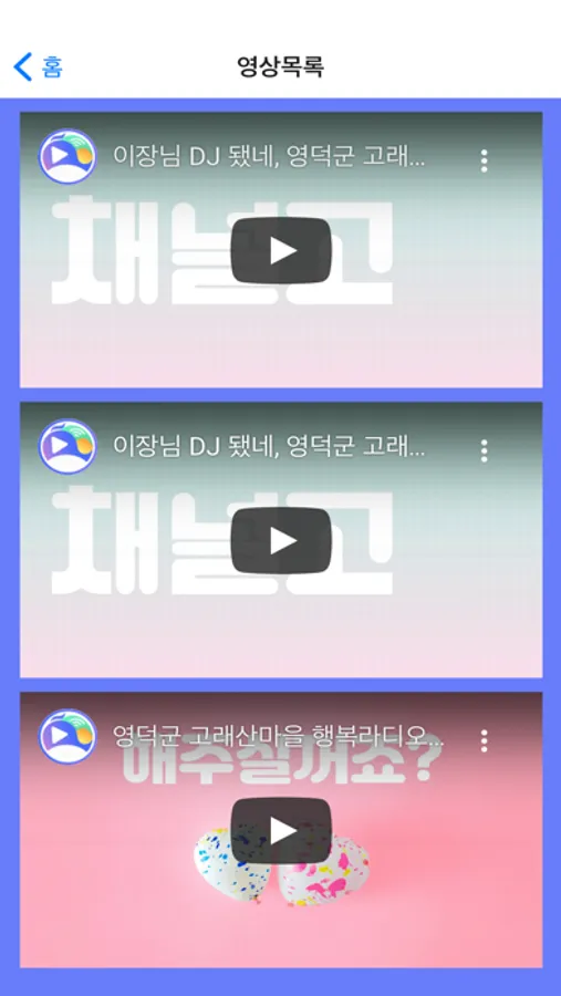 고래산마을 채널의 대표 라디오를 재생할 수 있고 더보기를 눌러 다른 라디오도 재생할 수 있습니다.