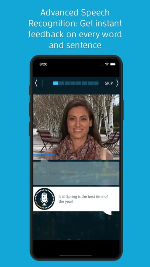 EdSpeaking utilizes advanced speech recognition provides instant feedback on every word and sentence you say, and provides: