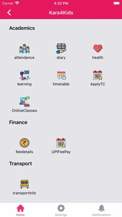 Kara4Kids provides communication app for parents using which they can download school announcements, Class assignments, Events.