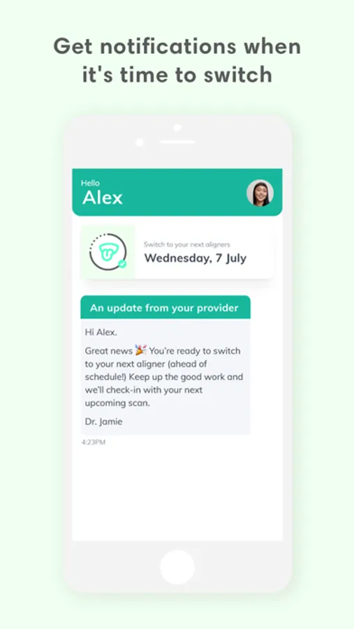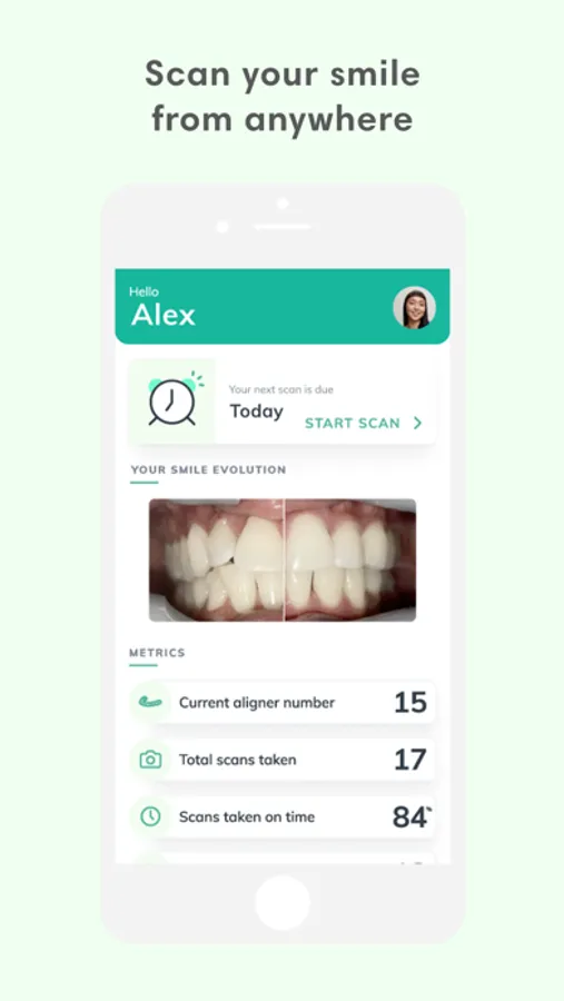 • Remote monitoring via app - Finish treatment fast & safe from anywhere. Scan, get notifications when it's time to switch from your orthodontist, & smile