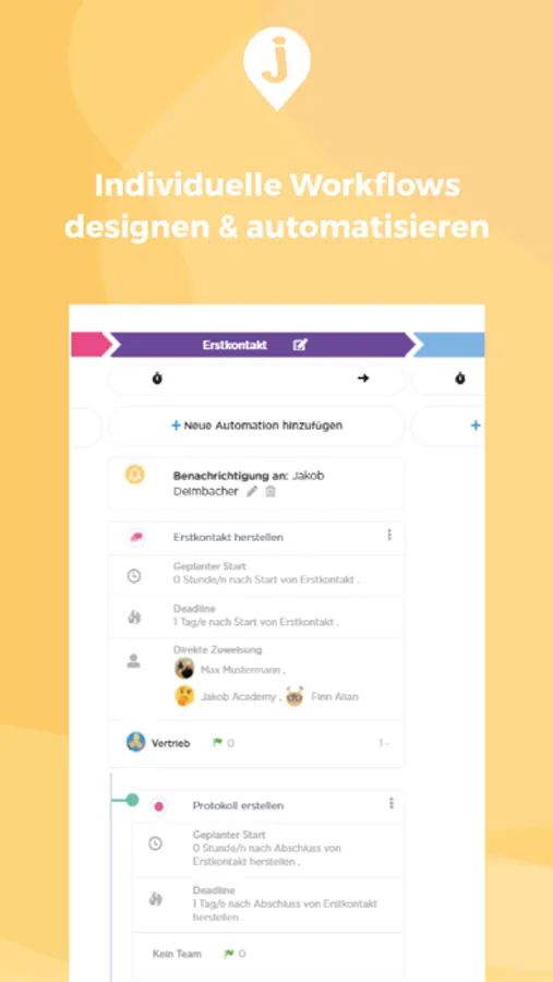 Mit dem einfachen Workflow-Designer von Joinpoints baust du dir einfach jeden Unternehmensablauf direkt per Baukasten zusammen. Füge Automationen hinzu und verknüpfe deinen Workflow mit über 2000 anderen Tools.