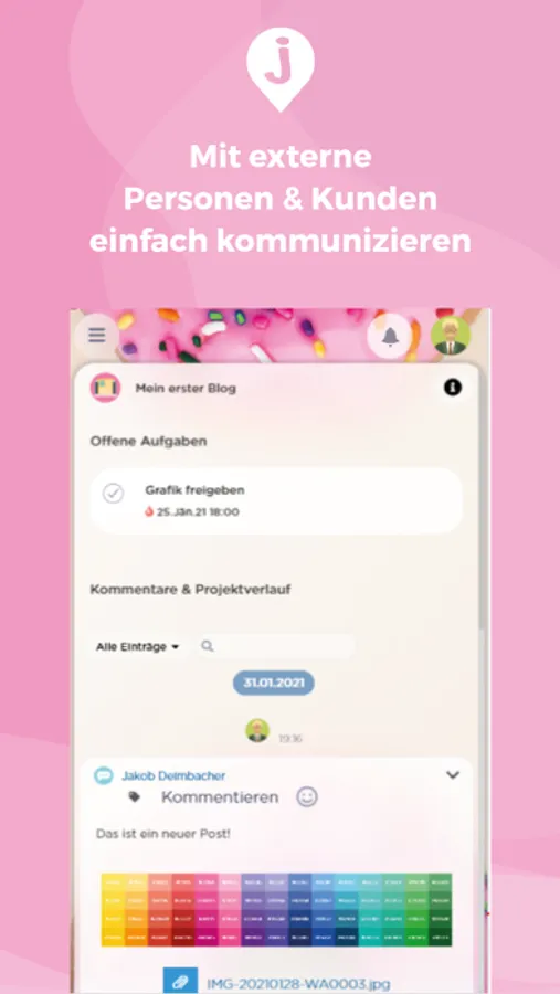 Mit dem Feature Connect kannst du Projekte, Aufträge & co direkt mit externen Partnern und Kunden teilen. Dabei können sie interaktiv in deinen Ablauf mit eingebunden werden und erhalten alle essentiellen und von dir freigegebenen Informationen ganz automatisch.