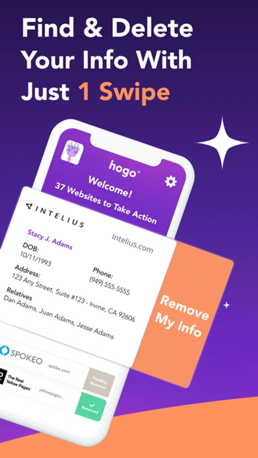Identify data trafficker sites: see what personal information they have on you and your family & remove personal information like your address, phone number, family members, and location data with ONE SWIPE.