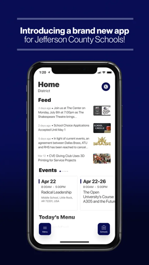 The event section shows a list of events throughout the district. Users can add an event to your calendar to share the event with friends and family with one tap.
